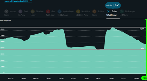Paris le 4 septembre 2025 - La transition énergétique française a enfanté une espèce rare et lucrative : le "Hibou Électrique", né des courbes d’arrêt d’éoliennes et de panneaux solaires. On les voit pulluler sur les graphiques de RTE, chaque fois que le soleil brille trop fort ou que le vent souffle trop généreusement.